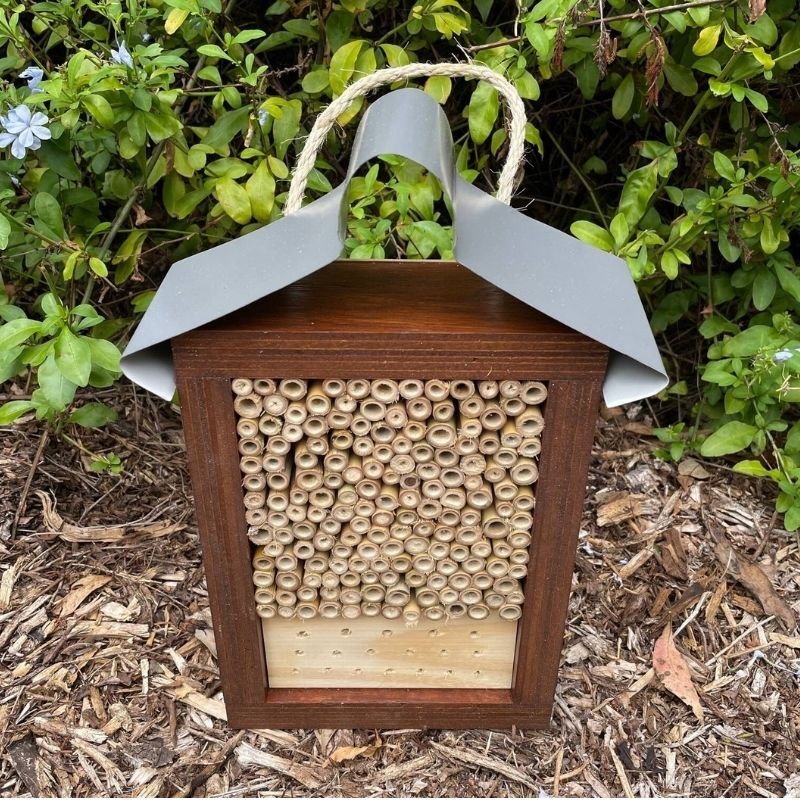 An insect hotel is a safe habitat for solitary bees, butterflies, ladybugs and other beneficial insects to increases biodiversity in your garden.