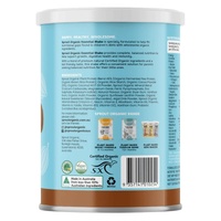 Sprout Organic Plant Protein Blend 46% (Organic Fermented Pea Protein, Organic Brown Rice Protein), Organic Rice Starch, Organic Coconut MCT Oil Powder, Organic Cocoa Powder, Natural Flavour, Sprout Organic Mineral Blend (Calcium Carbonate, Magnesium Oxide, Ferric Pyrophosphate, Zinc Sulphate, Potassium Iodide), Organic Guar Gum, Organic Inulin Powder, Organic Sunflower Lecithin Powder, Organic Natural Sweetener (Steviol Glycosides), Algal DHA Powder, Sprout Organic Vitamin Blend (Vitamin C, Niacin, Vitamin E, Riboflavin, Vitamin B6, Thiamin, Vitamin A, Folate, Vitamin B12, Vitamin D2), Xanthan Gum, Probiotic (Lactobacillus acidophilus).